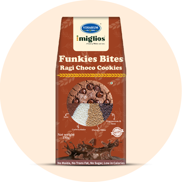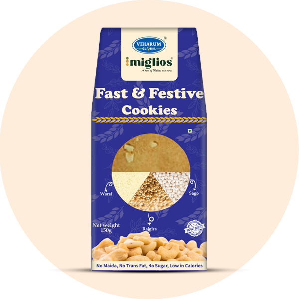 Miglios is a signature cookies brand from Viharum Global, created with the vision to bring together health, taste, and natural goodness in every bite. The name “Miglios” is inspired by the word “Millets”, symbolizing our commitment to using ancient, nutrient-rich grains as the foundation of modern, wholesome treats.